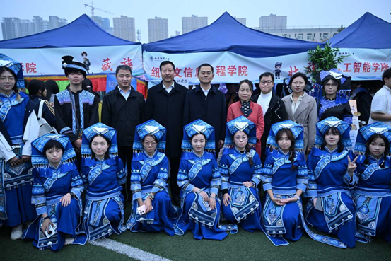 活动过程中,校党委书记马宁、校党委副书记安增旺、西安市长安区民宗局局长王宏芳,党校办公室、党委宣传部、党委统战部、学生工作部等部门负责人到我院展区驻足观看,饶有兴趣地听取了现场同学对壮族文化的介绍,并与现场师生亲切合影。